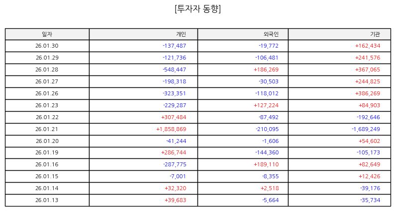 ▷ 오늘 주가는 장 초반 보합권에서 출발한 뒤 점진적인 매수 유입으로 완만한 상승과 조정을 반복하는 흐름을 보였다. 기관 투자자의 순매수 기조가 유지되면서 하방 압력은 제한적이었고 개인과 외국인 매매가 교차하며 거래가 이어졌다. 전반적으로는 방향성을 탐색하는 안정적인 움직임이 특징이었다.