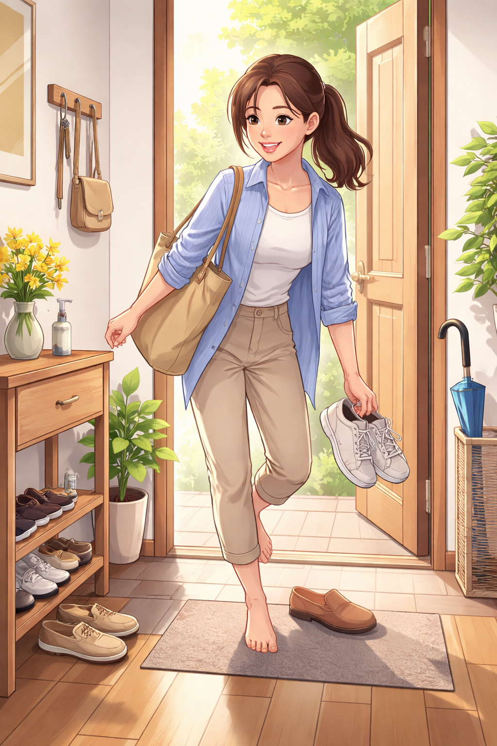 (2) 가방과 외투를 제자리에 두고 바닥 정리를 한다. 가방을 내려놓고 외투를 걸며 신발을 가지런히 정리한다. 이때 바닥에 떨어진 작은 물건이나 먼지를 눈에 띄는 것만 치운다. 완벽한 청소가 아니라 시야를 정돈하는 수준이면 충분하다. 시각적 혼란을 줄이면 피로감도 함께 낮아진다.