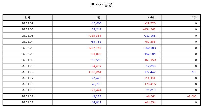 ▷ 최근 주가는 하락 추세가 이어지며 단기 이동 구간을 이탈한 상태다. 거래량이 동반된 하락이 나타났다는 점에서 투자심리는 다소 위축돼 있다. 뚜렷한 반등을 위해서는 거래 안정과 함께 매수 에너지 회복이 필요하다. 당분간은 변동성이 큰 구간이 이어질 가능성이 높아 보이며 보수적인 시각에서 흐름을 지켜볼 필요가 있다.