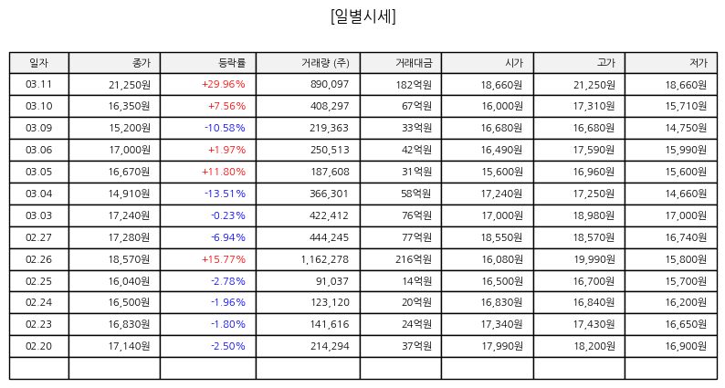 ▷ 2026년 3월 11일 에치에프알 주가는 전일 대비 4900원 상승한 21250원으로 마감하며 등락률 29.97퍼센트를 기록했다. 시가는 18660원에서 시작했고 장중 저가는 18660원 고가는 21250원으로 나타났다. 장중 매수세가 지속적으로 유입되며 가격제한폭까지 상승했고 거래량 역시 평소보다 크게 증가하면서 시장의 강한 관심을 확인할 수 있었다. 전일 종가는 16350원이었으며 이날 상승으로 단기적인 주가 탄력이 크게 확대된 모습이다.