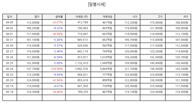 ▷ 오늘 주가는 장 초반 약세와 강세를 오가며 변동성을 보였으나 외국인 매수세 유입 이후 상승 전환에 성공했다. 거래량 또한 점진적으로 증가하며 수급 개선이 확인되었고 종가는 비교적 높은 수준에서 마감되었다. 이는 단기적으로 투자심리가 개선되고 있음을 보여주는 흐름이다. 다만 추세적인 상승으로 이어지기 위해서는 추가적인 기관 수급과 업황 개선 신호가 필요하다.
