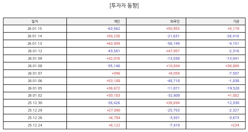 ▷ 금일 주가는 시가 이후 빠르게 상승하며 상한가까지 직행했다. 장중 조정 구간이 거의 나타나지 않았고, 매수 대기 물량이 꾸준히 유입되면서 상한가 매수 잔량이 유지됐다. 이는 단기 이슈성 매수보다는 수급 주체의 확신이 일정 부분 반영된 흐름으로 해석된다. 단기적으로는 상한가 가격대가 새로운 지지선으로 작용할 수 있으나, 다음 거래일에는 거래량 변화와 시가 형성이 중요한 관찰 포인트가 될 것이다.